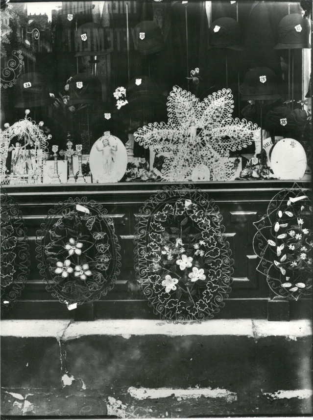 Et il me sortit alors d’une enveloppe de Picto, deux photographies pour le moins inattendues. Elles représentaient des vitrines d’un autre temps, dont l’une était celle d’un magasin d’objets de décoration mortuaire. L’autre, signée au dos, m’était aimablement dédicacée.