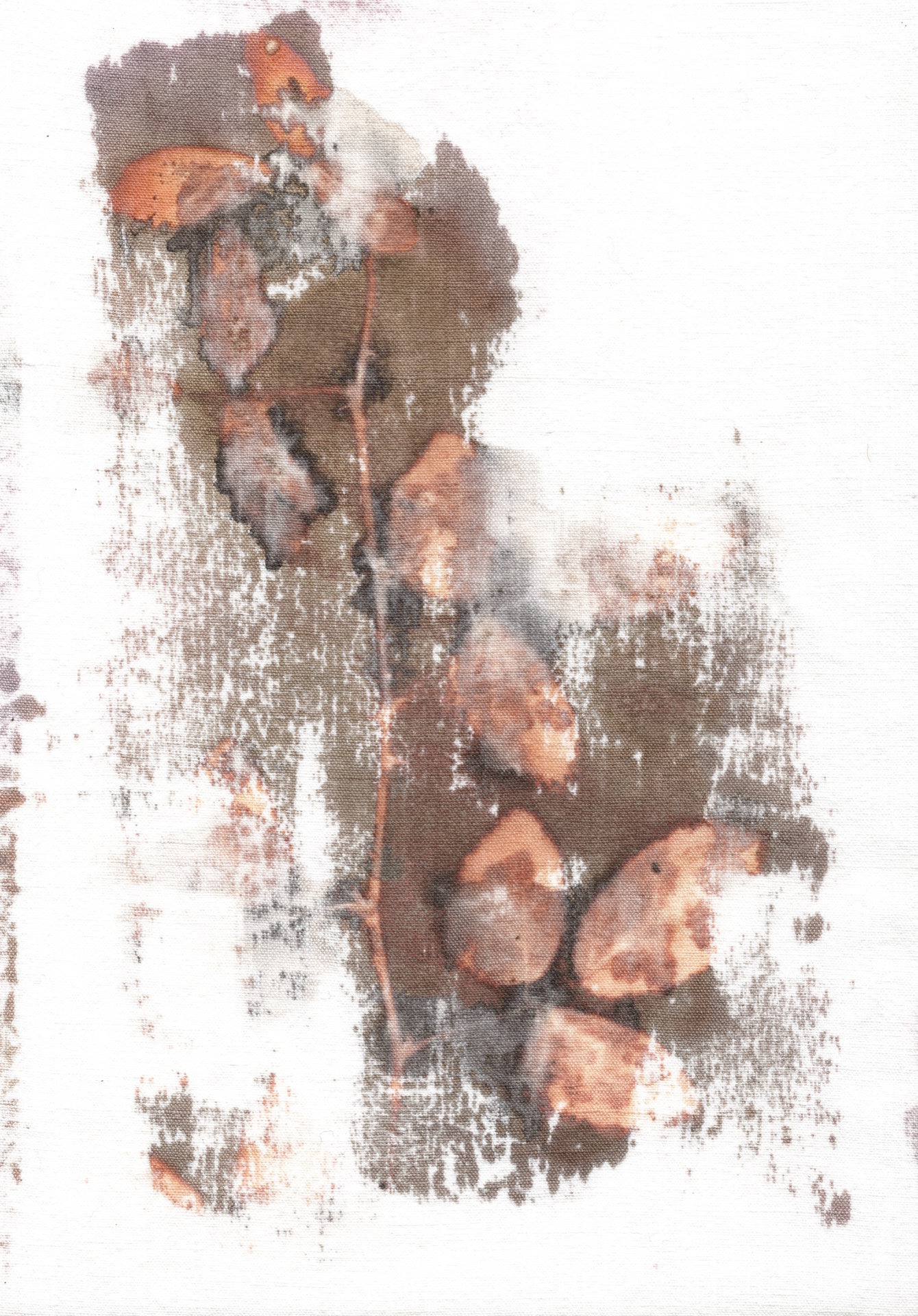 Avec le nouveau projet que je développe actuellement, je vais cette fois-ci à la rencontre de la plante directement dans son milieu, également marqué par l’activité anthropique qui est la Terre des feux. Située à proximité de Naples, entre le Vésuve et la mer, ces sols sont nommés ainsi en raison des incendies de montagnes de déchets venus de tout le nord du pays et de l’Europe. Je me concentre sur le pourtour du Vésuve où se trouvent de nombreuses carrières. Ces carrières sont devenues des décharges illégales qui comme à Terzigno sont emplies de plus de trois cents mètres de profondeur de déchets, sur les flancs du volcan. On raconte que parfois les chargements étaient enterrés avec les camions mêmes qui les convoyaient. Une grande partie de ces déchets illégaux s’accumule dans une zone d’entre-deux. À la lisière de la ville, entre l’urbain et le rural, une marge devenue un réceptacle de l’ingérence, souligne l’agronome Antonio du Genario que nous avons rencontré. Certains désignent cette zone comme une « barrière de l’horreur ». Le problème est à l’échelle du désordre territorial, mais il reste « circonscrit », nous a-t-on répété. Dans la décharge, comme un laboratoire photographique à ciel ouvert, je me rends auprès de plantes qui poussent dans ces rebus de nos sociétés. Et, sans extraire la plante du sol, je collecte une empreinte de son corps. Je réalise cela via un procédé basé sur une molécule présente dans toutes matières organiques, le phénol. La production du phénol par la plante peut varier lorsque le végétal se trouve dans un état de « stress ». Donc, la présence de métaux lourds dans les sols peut générer une telle réaction chez la plante que la feuille photosensible va révéler. Je co-crée ainsi ces « phytographies » non pas sur du papier mais sur des tissus que je récupère dans la décharge, ce sont eux que je photosensibilise pour qu’ils deviennent une sorte de linceul pour la plante. Avec cette technique, je reprends les procédés de la photographie analogique mais je n’ai plus besoin de révéler l’image, c’est la plante elle-même qui révèle son empreinte sur la feuille photosensible que je fixe ensuite.