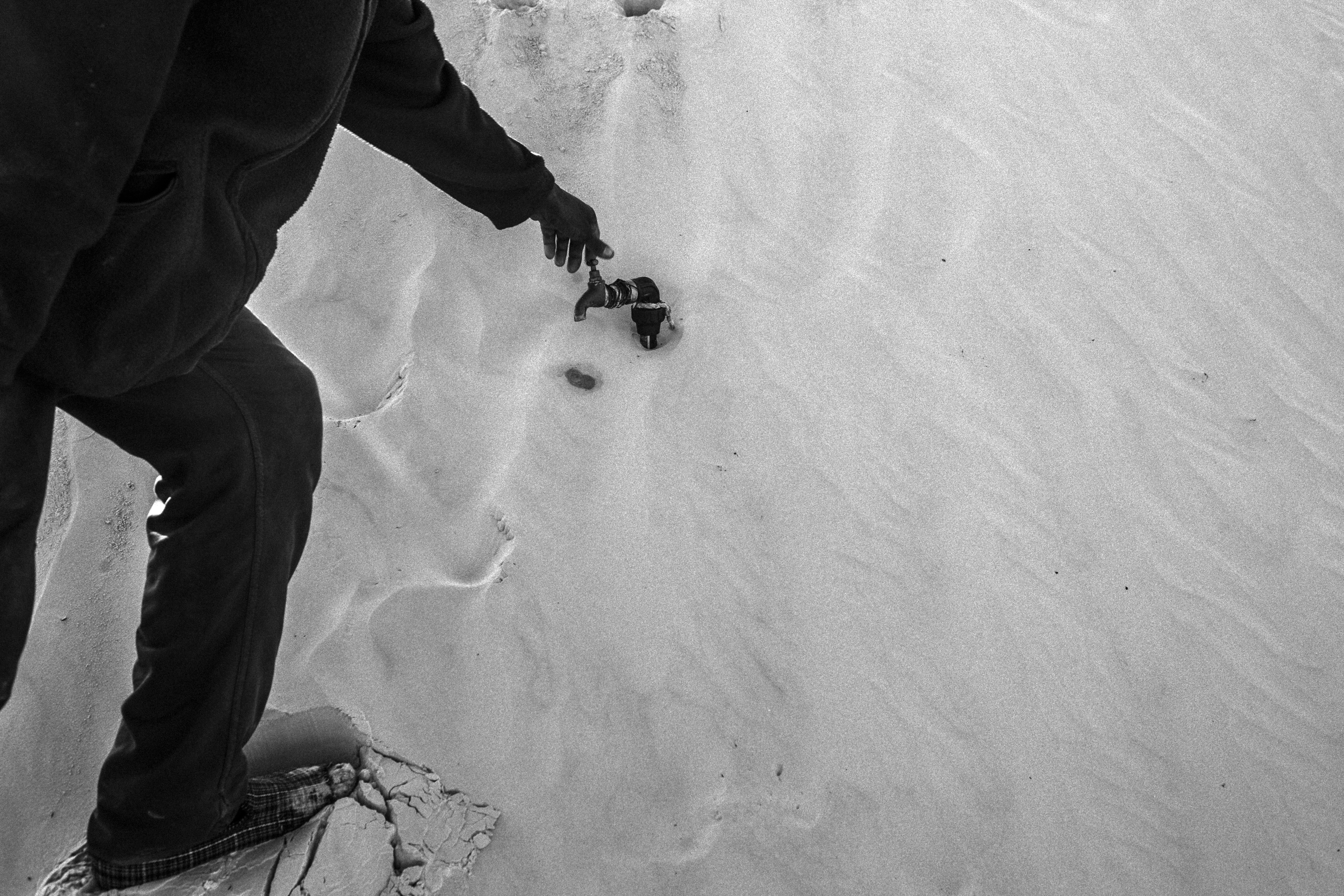 Les gens des régions où je travaille s’engagent avec moi. Je tiens à les rencontrer, sans les victimiser dans mes images, tout en leur faisant prendre conscience de leur situation. Mais les villageois de Nowael, Chidma et Sabria, où je me suis installé tous les week-ends ces derniers mois, n’ont pas encore formé une véritable communauté pour lutter contre l‘envahissement du sable ; il y a, ici et là, des petits chantiers subventionnés par l‘Etat pour créer des barrières naturelles autour des villages .